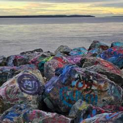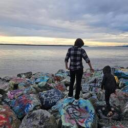 This little beach is right behind the airport. No moose, but some pretty cool rocks. Bonus: airplanes!