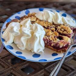 We had a great dinner here. We tried a couple of the local Riesling wines. I had some very tasty schnitzel with mushrooms and we finished it off with cherry streusel.
