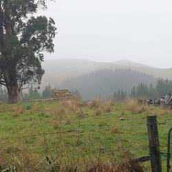 We went tiki touring again today. This time we drove out to Gore Bay and then south to Port Robinson and Domett. We'd been told Gore Bay was really lovely and we were not disappointed!! Even in the pouring rain!! Crashing waves, towering cliffs, good company. We loved it! We ate our bacon and egg sammies there and then carried on south via, of course, another dirt road some of which is classified as 4wd. Fun, fun, fun! The car was clean a couple of days ago and now it's filthy again!
