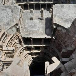 From Modhera, joined by Vipal, we travelled north to Patan and its UNESCO World Heritage stepwell. On arrival there did not appear to be much there other than lawns shrubs, and a few monkeys. However, from the rim climbing slowly down through the 7 distinctive levels I became increasingly impressed