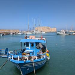 We drove from here to Heraklion. To check into the hotel we left our bags and then I took the car back to the airport while Ed found a quiet bar. After a quick drink we spent some time wandering around the old part of Heraklion, visiting the port, the old Venetian ship building workshops.