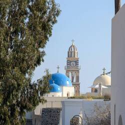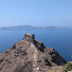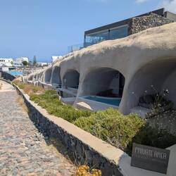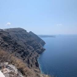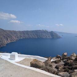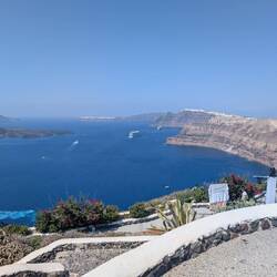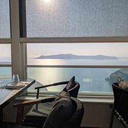 By 10:00 a.m. after uneventful trip or base a little bit late we arrived in the port and disembarked. There were plenty of buses waiting and so we hopped on a local bus to Fira. Here we walked the uphill through the lanes journey to our hotel and arrived a bit sweaty but fortunately we're allowed to check in early.
