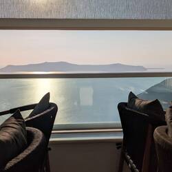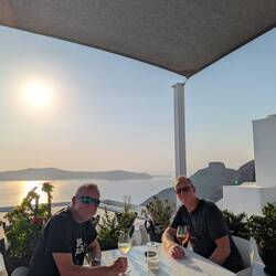 After sunset and a shower we walked a short distance to a rooftop restaurant where we had a lovely last evening meal in Greece for this trip. Finally back to the hotel for a drink on the veranda overlooking the caldera.Читать далее