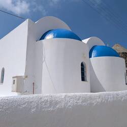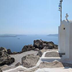 We walked on up and over another big hill passing a couple of chapels on the way and arriving in Oia eventually. The phrase mad dogs and Englishmen came to mind given how hot it was.