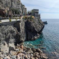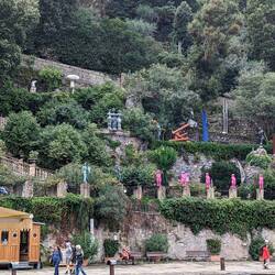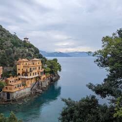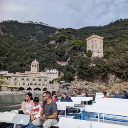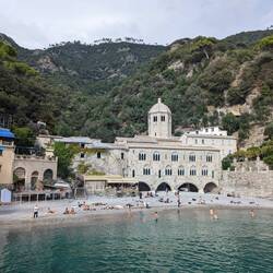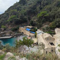 We set out for a 5 mile walk from our hotel to San Fruttuoso Di Camogli. The walk was pretty hilly and we started by walking down some steps and crossing a stream before climbing and climbing up moreLæs mere