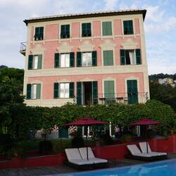 Our accommodation for the last couple of nights, and for one more, has been Villa Rosmarino. What a great place to stay. Only 6 rooms and a swimming pool, trompe l'oeil facade and friendly and helpfulLæs mere