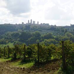 After breakfast which consisted of meats, ham, cheese and quiche amongst other things, we decided to walk the long way round to San Gimignano. The route took us through some vineyards and then alongLæs mere