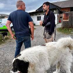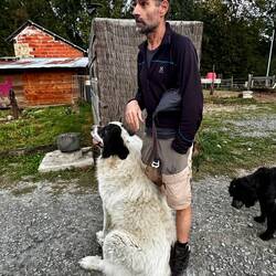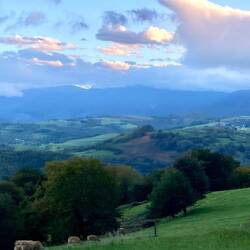 Desta vez o destino foi uma quinta no meio das montanhas onde se produzem uns queijos de cabra fantásticos (os Tomme des Pyrenées), cheia de animais felizes e onde o dono é conhecido pela grande hospitalidade… e assim foi, mal entrámos com a Cali no portão, veio cumprimentar-nos rodeado de cães e disse logo que, se quiséssemos, hoje podíamos estacionar e ficar ali a dormir, perto dos cavalos… o Boni é que nunca tinha visto nada assim e ficou muito curioso (e um pouco amendrontado).