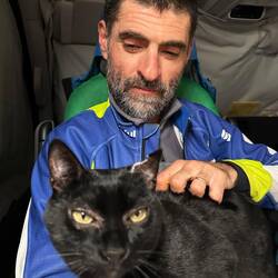 É lindo o Bony. Ele estranha mas vai adaptando devagarinho. Está convosco e o receio vai atenuar com a vossa presença. Depois de habituado, diz ao Cédric para parar, porque quer fazer xixi 😃😃