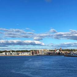 Estamos perto de uma cidade grande, chamada Umeå, mas o sítio onde vamos pernoitar fica nos arredores, num ancoradouro junto a uma pequena zona residencial, com vista para um braço de mar da costaEn savoir plus