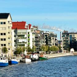 Estamos perto de uma cidade grande, chamada Umeå, mas o sítio onde vamos pernoitar fica nos arredores, num ancoradouro junto a uma pequena zona residencial, com vista para um braço de mar da costaRead more