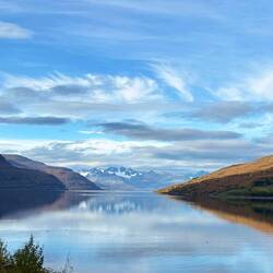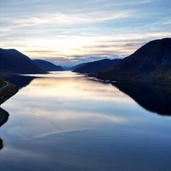 O dia amanheceu pleno de sol e o caminho pela E6 continuou lindíssimo, com mais paisagens de fiordes tão deslumbrantes comoEn savoir plus