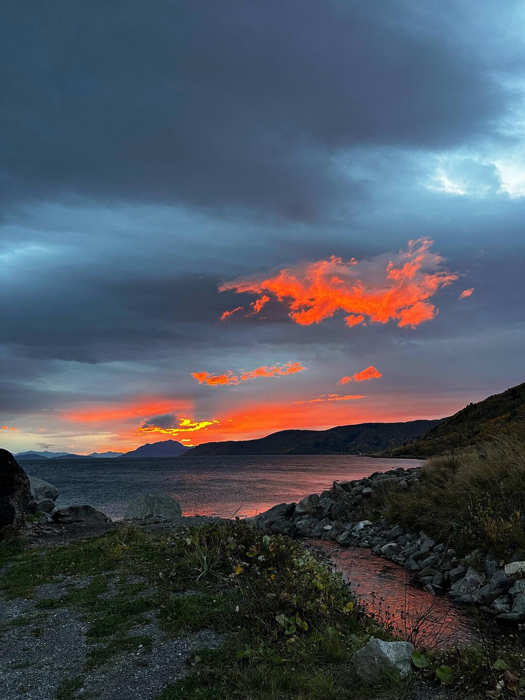 O final do dia presenteou-nos com um magnífico pôr-do-sol, em tons de rosa e laranja, refletidos no céu nublado que hoje, infelizmente, não nos vai deixar ver as Auroras Boreais :(