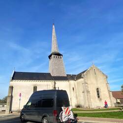 O dia está quase a acabar e o sol pôs-se por cima do pequeno lago onde hoje estacionámos e onde vamos fazer o jantar de aniversário do Cédric - 50 anos!