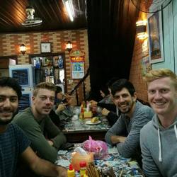 Einfach mal durch kleine Gassen geschlendert und durch Zufall in ein Familienfest gestolpert. Es war ein Festakt auf des Vaters Tod, der jährlich gefeiert wird. Die Kinder des Vaters, mittlerweile zwischen 50 und 60, und ihre Kinder und Enkelkinder waren anwesend. Die männlichen Familienmitglieder saßen an einem großen Tisch, der mit viel Essen und Bier gefüllt war. Die weiblichen saßen in einem Nebenraum, tranken kein Bier und kamen zwischendurch, um sich vom Essen zu nehmen. Komische Tradition.