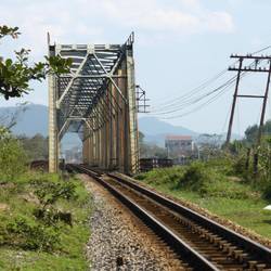 Mitten durch die Stadt fährt eine Eisenbahn. Links und rechts unmittelbar an den Schienen stehen Haus an Haus die Wohnungen der Einheimischen. Zwischen Bahn und den Häusern nur nen Meter platz.もっと詳しく