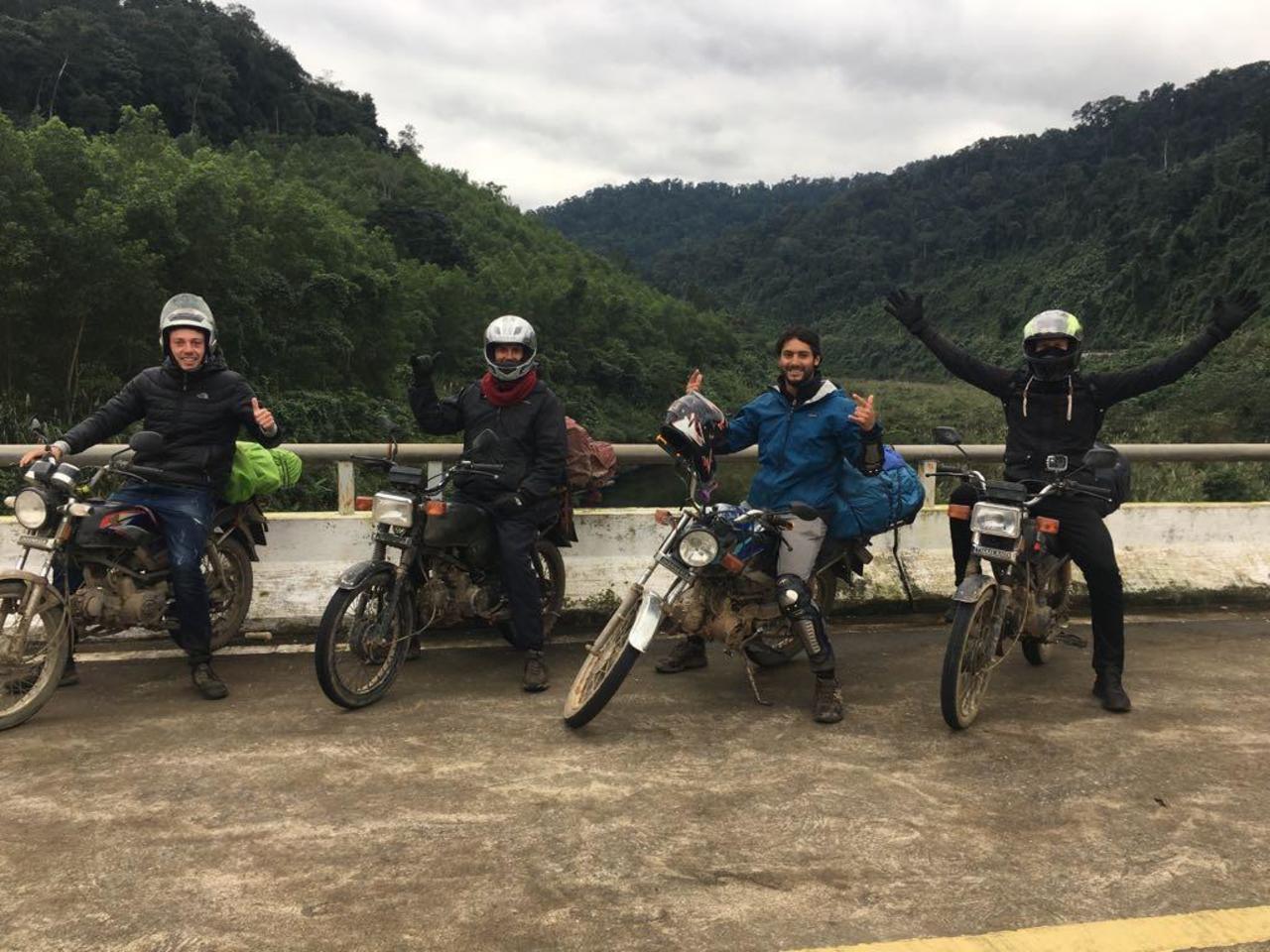Stefan, Steve, Carlos und ich. Ein Niederländer, ein US-Amerikaner, ein Mexikaner und ein Deutscher. Die neue Motogang. Auf dem Weg Richtung Zentralvietnam.
