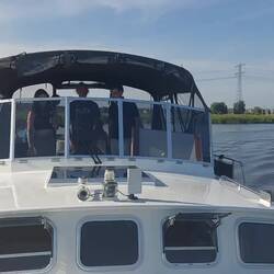 Am Morgen haben wir im Hafen von Joure abgelegt und sind gemütlich durchs Tjeukemeer gefahren. Dort haben wir einfach den Motor ausgemacht und ohne Anker mitten auf dem Wasser gestoppt . Michelle,Read more