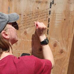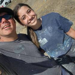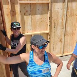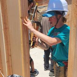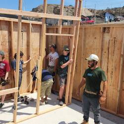Today was a great day as the team headed out for the first day of a 2-day build. We hit the ground running and started framing the walls and painting right off the bat. (They often put wood up with wet paint and so everyone gets pretty covered and paint.) I help build trusses and stand the walls. Sam was on the painting crew.