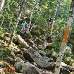 Heuer wird der Wanderhuf geschwungen. Einmal entlang des Fämtleden bis zur Hängebrücke über Stock und Stein.