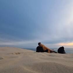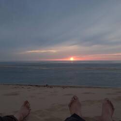 Etwas spät, aber passend zum stark verlängerten Sonnenuntergang gibt's mit der Dune du Pilat die mit 110m Höhe höchste Wanderdüne Europas.