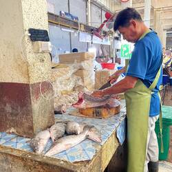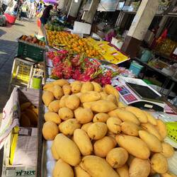 Ich hatte mir am Abend bereits das Ziel für den heutigen Vormittag rausgesucht: es sollte zu einem lokalen Großmarkt gehen, den Maharaj Market. Solche Märkte finde ich sehr spannend, da dort die Einheimischen einkaufen. Wenn ich solch einen Markt beobachte, erschließt sich mir vieles. Was wird angeboten, getrocknet oder frisch, wie wird es angeboten, was kostet es, in welchen Mengen wird eingekauft, wer kauft ein, wie wird transportiert, was wird direkt verzehrt?