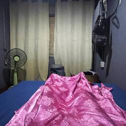 Die Unterkunft ist was Einfaches, aber solide. Mit fällt jedoch auf, wie gut ich mich in letzter Zeit an Klimaanlagen gewöhnt habe. Hier hab ich keine. Nur einen Ventilator, der mir die warme Luft mit Schmackes entgegen pustet. Immerhin. Es sind derzeit hier 34-36 Grad tagsüber, daher wäre eine Klimaanlage schon ganz cool. Vor allem für die Nacht. Tagsüber bin ich ja eh draußen. Die pinke Seidendecke habe ich nur mal zum Spaß übergeworfen, mir war schon warm genug im kurzen Pyjama.