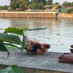 Nebst den Tempeln wollte ich auch noch ein paar andere Ecken von Ayutthaya und meiner Nachbarschaft erkunden, sonst wäre es ja auch etwas einseitig. Die Stadt an sich ist nicht ganz so schön, wenn man die Ruinen ausblendet. Sehr viel Beton und eng gebaut. Hier leben um die 55.000 Menschen plus die Touristen natürlich. Wenn man sich jedoch bei den Grünflächen und am Fluss aufhält, gibt es wirklich sehr üppige, schöne Natur und eine Menge Blumen- und Pflanzen-Verkäufer. Da hier viel Wasser drum herum fließt, funktioniert es mit der immergrünen Natur sehr gut. Ich fand einen Pflanzenmarkt, der wirklich alles zu bieten hatte was der thailändische Boden hergibt. Die Obstbäume hätte ich am liebsten alle eingepackt.