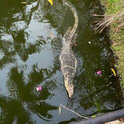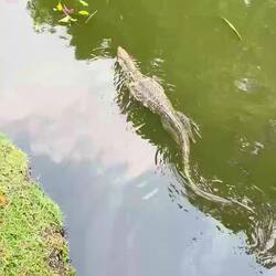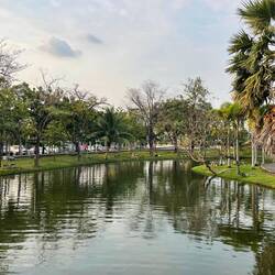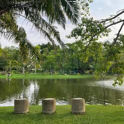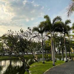 Und bei meinem Glück fand ich einen coolen Park. Der war nicht groß, aber sehr schön angelegt und die Wege so, dass man gut joggen konnte. A den Rändern gab es kleine Trimm-dich Geräte und einen kleinen Sportplatz, wo wild durcheinander gespielt wurde. Richtig gut. In dem Park war ein kleiner See und in dem See schlängelten sich mehrere Warane. Als ich den ersten entdeckte war ich ganz aufgeregt und bin nicht zu nahe ran. Hab dann kurz gegoogelt, ob die in Thailand gefährlich sind. Nope. Also beim Nächsten bin ich direkt näher ran. Die Tierwelt ist hier einfach total irre und das mitten in der Großstadt.