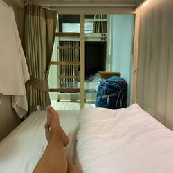 Nachdem ich in meiner Unterkunft eingecheckt hatte und dann draußen auf einem Markt saß und auf mein Essen wartete, merkte ich, wie anstrengend der Tag war. Der steckte mir so richtig in den Knochen. Vor allem die letzten 2 Stunden. Daher gab es nach dem Abendessen und einem kurzen Spaziergang zum Seven Eleven kein Programm mehr. Ich war duschen und nun liege ich auf dem Bett und verarbeite das Geschehene in meinem Kopf und hier beim Schreiben. Sachen gibt’s!