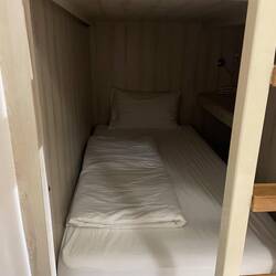 Ich habe ein eigenes Zimmer mit einem Bett, Fenster und was zum Aufhängen. Also an sich mit allem, was man so braucht. Sanitäranlagen sind geteilt für alle. Davon sind ausreichend da und auch sauber.