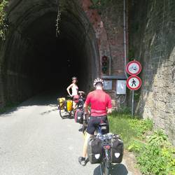 Der Weg auf der schwach befahrenen Autostrasse führt durch einen Tunnel,Baca lagi