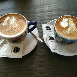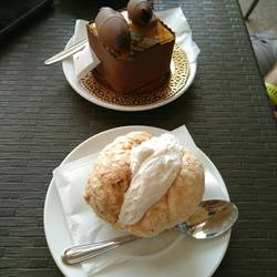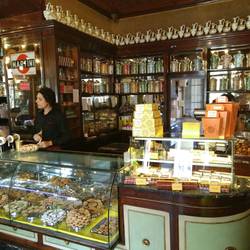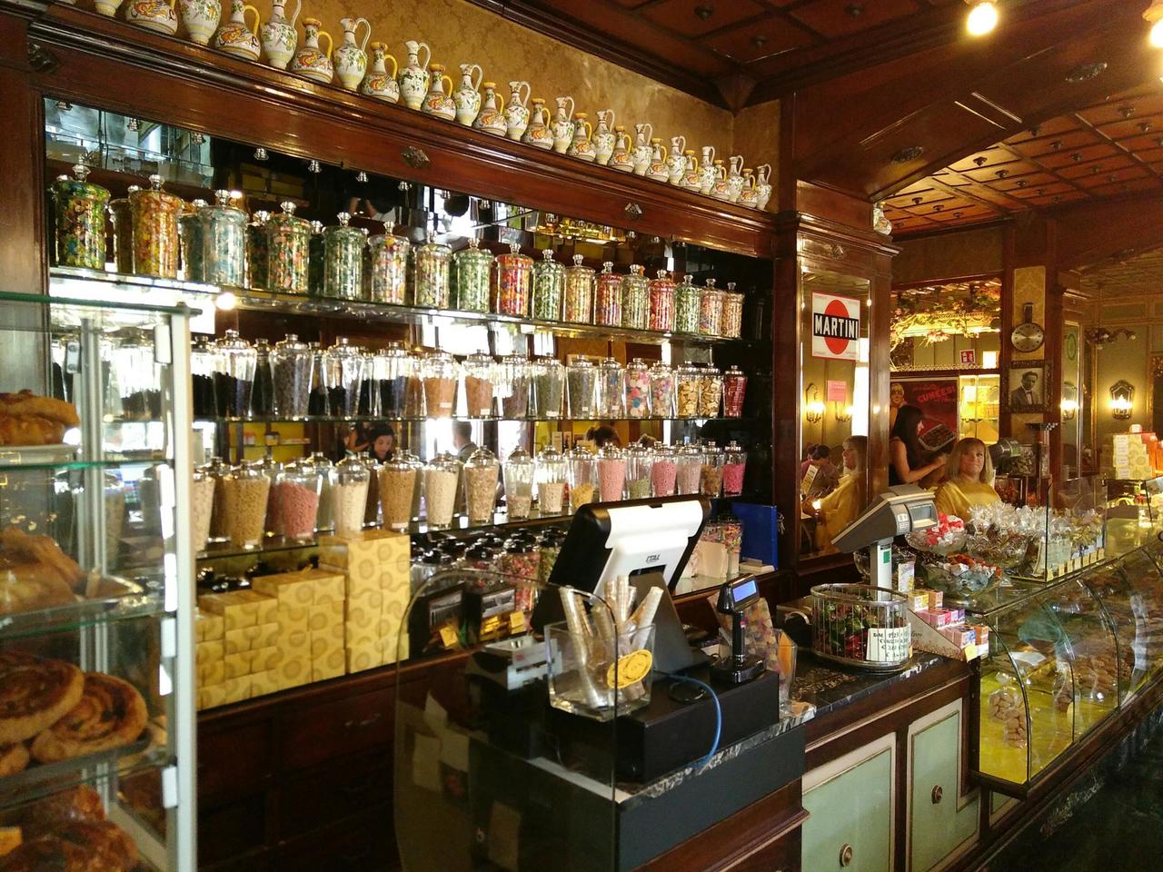 Wir gönnen uns einen zweiten Kaffee und degustieren zwei lokale Köstlichkeiten, beide sehr süss.