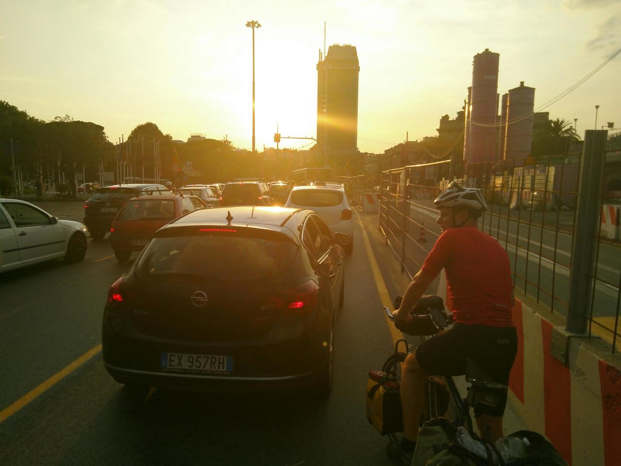 Auf geht's! – Aber zuerst müssen wir uns aus dem verkehrsreichen Stadtzentrum an die Peripherie durchkämpfen.
