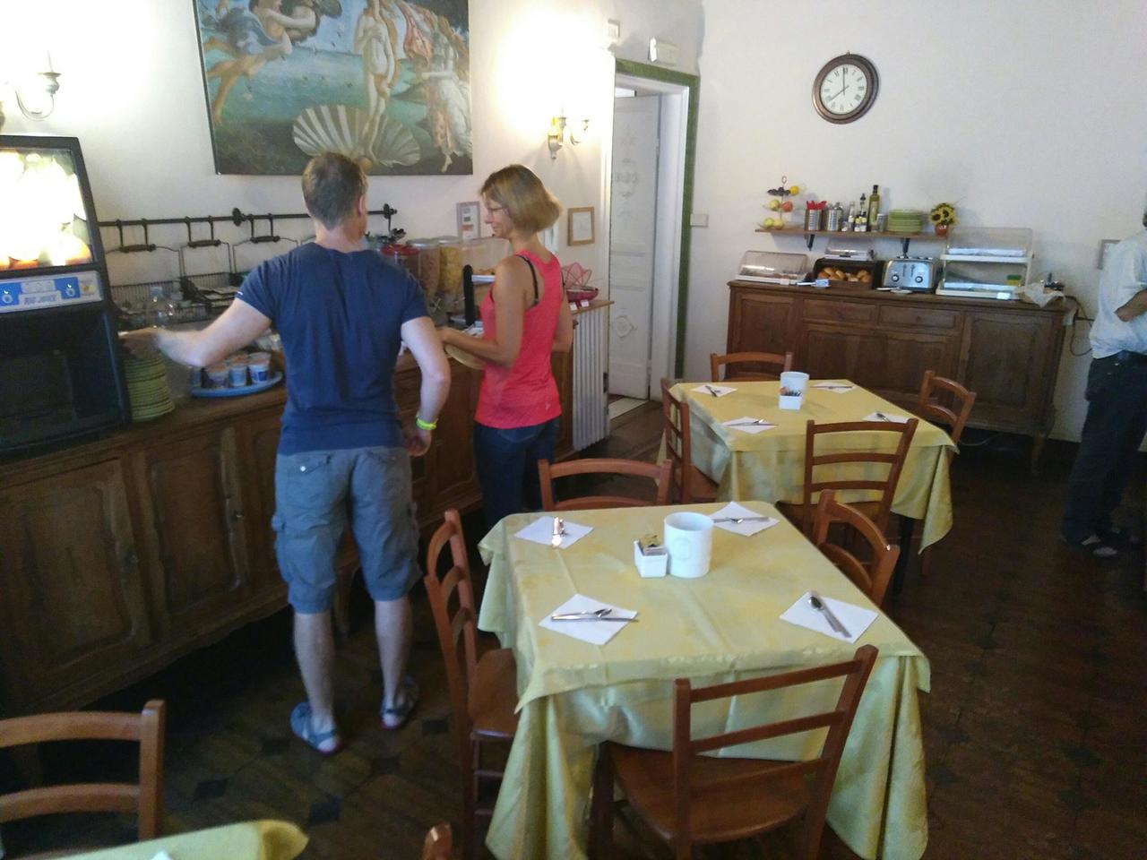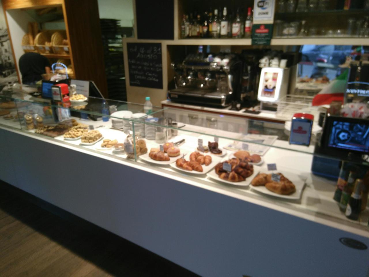 Unser erstes Frühstück, das wir nicht kn der Unterkunft essen. Wir vermissen Müesli, Butter+Konfi.