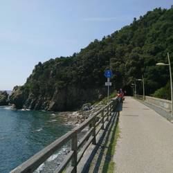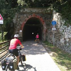 So fährt sich's leicht und locker, alles ebenerdig auf kombinierten Fussgänger- und Velowegen in gutem Zustand. Steil abfallende Küstenbereiche wechseln sich ab mit umfunktionierten Eisenbahntunnels.