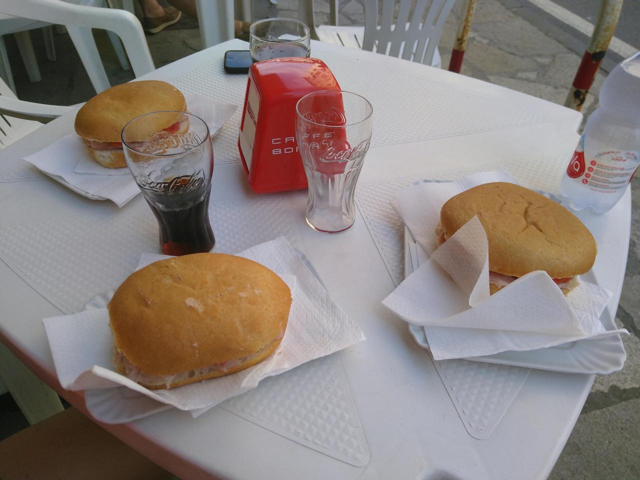 Eigentlich wollten wir nur eine kurze Pause mit Imbiss machen, da bemerken wir, dass es ja schon Mittag ist! Also wird der Imbiss zum bisher günstigsten Mittagessen.