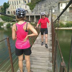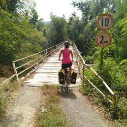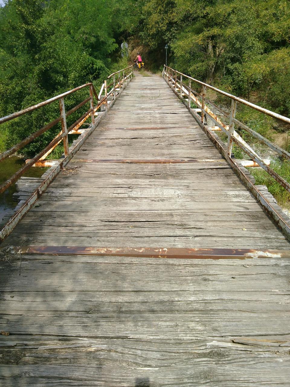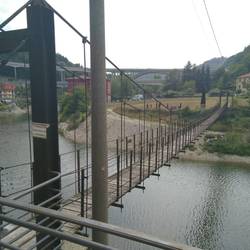 Nein, diesmal kein weiterer Holzweg sondern eine rostige Hängebrücke, die ziemlich leicht in Schwingung gerät, wenn man sie überqueren will – irgendwie lustig und doch nicht ganz geheuer.