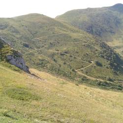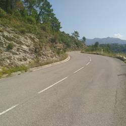 Die Steigung der Strasse hat minim abgenommen, so dass es nun nicht mehr ganz so kräftezehrend ist. Und wiederum schlängelt sich die Strasse den Berghang hinauf. Die Aussicht ist fantastisch.