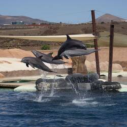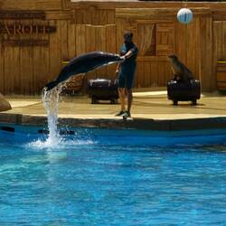 Bei brütender Hitze sahen wir uns verschiedene Shows an (Papageien-, Delphin-, Seelöwen- und Cowboy-Show).