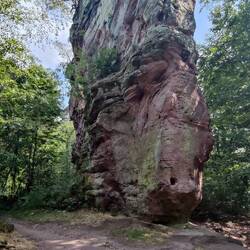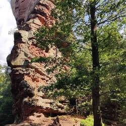 Als ich los ging dachte ich mir was das für ne komische Schleife sein soll die ich da laufen sollte. (Mein weg kreuzte sich dabei) aber als an der Kante des Orenfelses an kam wusste ich das es sich gelohnt hat. Dort war eine schroffe Felsformationen auf die man mit Hilfe einer Leiter hoch gehen konnte. Oben angekommen hatte man einen Wahnsinns Panorama Blick auf die verschiedenen Burgen, den Pfälzer Wald usw usw usw (siehe Bilder).