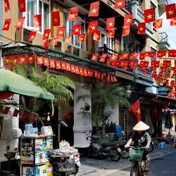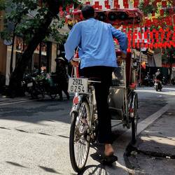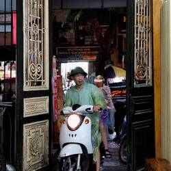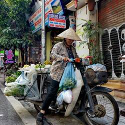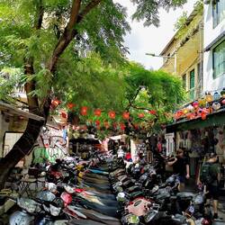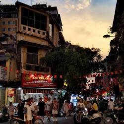 In Hanoi, allerdings fast ausnahmslos motorisiert..... die Stadt der 1 Millionen Roller und zero Verkehrsregeln eben.