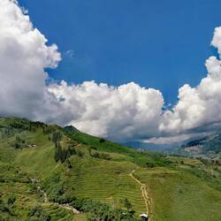 Ab Lao Cai, verändert sich dann die Landschaft gefühlt mit jeder Serpentine - Reisterassen, Dschungel, wolkenverhangene Berge..... spektakulär!