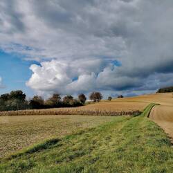 Während wir so froh gestimmt und völlig verhaltensunauffällig durch die badischen Great Plains hinter Obergrombach stromern, wird sich gegenseitig auf den neuesten Stand gebracht.