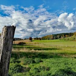 Die Landschaft hat Potenzial, bietet oft Weitblicke, lichten Laubwald, ein vielversprechendes Feuchtbiotop ( wir wollen dieses Jahr unbedingt mal Salamander sehen ) und..... Laufen auf Naturboden.