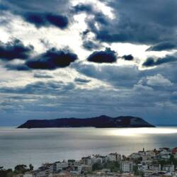 Die griechische Insel versteckt sich hinter einem dichten Regenvorhang - Allah'a şükür nur für kurze Zeit denn bereits zu Mittag, bummeln wir wieder unter blauem Himmel zu unserem Ev Yemekleri Restaurant "Kuşane".