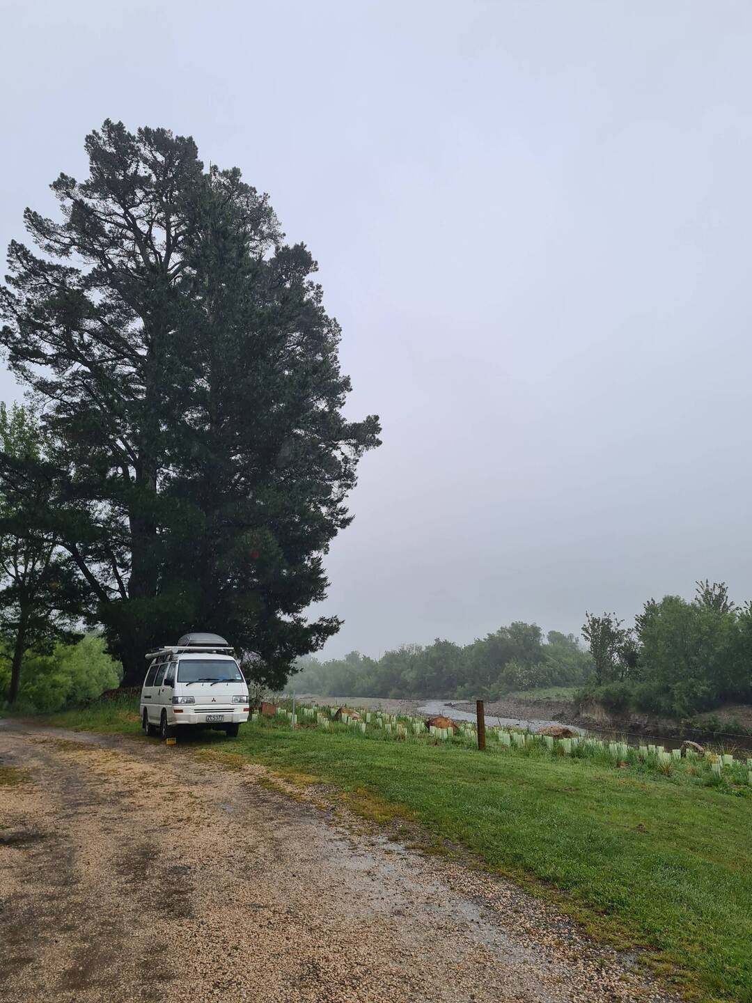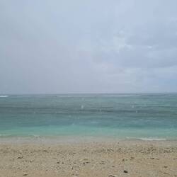 A torrential rainstorm on the beautiful beach that was destroyed by the Tsunami