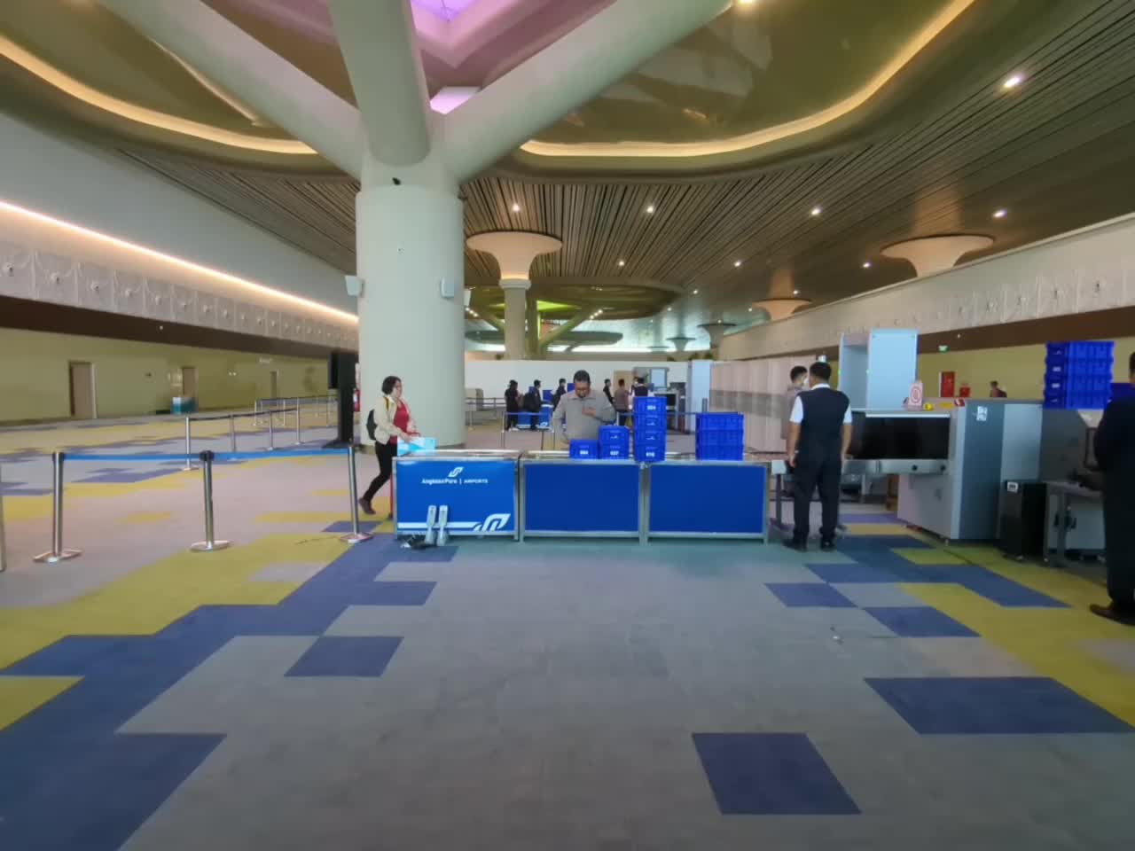 Some surprisingly cultural experiences for an airport. Had to wait to go through security due to the daily national anthem, and a bizarre cartoon