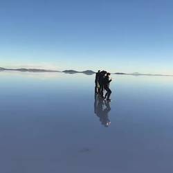 Comment dire ... Sûrement la plus belle journée/soirée du séjour ! Le lever à 5h est compliqué mais l’excitation du Salar ne fait que masquer les cernes d’une nuit trop courte. Nous partons donc de nuit, sans grand repère pour s’orienter dans le Salar, le guide n’a pas de gps et il n’y a pas de route type, les traces de roues partent dans tous les sens. Le Salar est très humide, voir par endroit complétement trempé, nous sommes donc ravis de ne pas avoir pris notre propre 4x4. On distingue peu à peu le soleil qui se lève, le reflet de celui ci dans les différentes flaques d’eau salée est déjà sympa mais ça n’est rien à côté de ce qui nous attend. Le premier stop de la journée se fera sur une île appelée Incahuasi. C’est une île recouverte de cactus géants, le tout en plein milieu du Salar. Nous y resterons un moment afin d’observer le lever du jour, c’est tout simplement à couper le souffle ... L’île en elle même est déjà très impressionnante, je n’ai jamais vu de tels cactus, mais le tout avec l’immensité cristalline du Salar et le reflet des montagnes sur l’eau c’est tout simplement majestueux. À chaque nouveau rayon de soleil le décor est encore plus fantastique. Nous profitons d’un panorama à 360 degrés qui nous laisse apprécier l’intégralité de l’environnement qui nous entoure, c’est sublime. Nous resterons là une bonne heure, ébahis par temps de beautés avant de prendre le petit déjeuner sur le Salar même. Tout est prêt, nous n’avons qu’à mettre les pieds sous la table (de sel s’il vous plaît) et apprécier le moment présent. Nous marcherons par la suite dans le Salar avant que le guide nous amène à plusieurs endroits pour prendre des photos. Nous commencerons par une partie mouillée afin d’avoir notre reflet sur l’eau, puis sur du sec afin de faire certains montages d’illusion (le plus connu étant le fait d’être poursuivi par un dinosaure). Nous ferons de nombreuses photos ainsi que quelques clichés en drone, le guide est plutôt très patient ! Cette expérience est unique, nous tâchons d’apprécier chaque instant pour graver ces images à tout jamais dans nos têtes. Les images s’immortalisent mais la sensation perçue ne peut se retranscrire, malgré ces quelques mots cela se vit. Nous poursuivrons par une pétanque proche du monument emblématique du salar, une étoile recouverte des drapeaux des différentes nations du monde. L’expérience est anecdotique, nous pourrons nous targuer d’avoir fait de la pétanque dans des lieux improbables. Le prochain stop se fera au marché à souvenirs, à la sortie du salar. C’est un point de passage obligé afin de faire marcher l’économie locale. Nous ne serons pas très inspirés si ce n’est Matthieu et moi qui souhaitons ramener un bloc de sel. Je ferai un folie avec un bloc cristallisé de plusieurs kilos ... Sûrement un héritage de mamounette avec ses voyages archéologiques de fossiles au Maghreb, durant sa jeunesse. Le dernier stop se fera au cimetière de trains d’époque, un vestige du passé pour acheminer les minerais de Potosi vers Uyuni. C’est assez sympa mais les locomotives sont presque toutes taguées ... Nous finirons la journée par Uyuni, la ville est assez grande et l’architecture sans intérêt. Comme nous sommes le trio toujours plus, nous demanderons à l’agence s’il est possible d’allonger notre séjour et rentrer sur San Pedro un jour plus tard. Ils accepteront gentillement, nous aurons donc l’occasion de booker une autre excursion pour profiter une dernière fois du salar. Il est seulement 15h, nous repartons donc dans le salar avec un autre groupe de 4 personnes pour une sortie de 15h30 jusqu’à 21h. Le guide est encore un niveau au dessus pour les photos, nous ferons des clichés sublimes et une vidéo sublime. Le clou du spectacle se fera à la tombée de la nuit ! Le coucher de soleil est surréaliste, un miroir d’eau ainsi qu’une nuit étoilée indescriptible. De loin la plus belle de notre vie, tant le ciel est pur. Le ciel reflète sur le miroir d’eau c’est juste magique, incroyable, majestueux, les superlatifs me manquent tellement c’était un rêve ... Que la nature est belle 💚 !!Read more