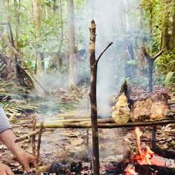 Après la soirée incroyable passée la veille nous avons dormi comme des bébés dans cette communauté fort sympathique. Au petit matin on profite du cadre, le lever du jour est sublime, face à l’amazone avec cette végétation incroyable. On prend le temps d’apprécier notre café et c’est parti pour la première activité de la journée, encore une fois inédite, à savoir la préparation du caïman. On le découpera en plusieurs tronçons, tout d’abord la tête, la queue, puis une autre partie du corps. Je ne vous cache pas que la « peau » est comme une armure en cuir épais d’une incroyable résistance, je ne vous explique pas le nombre de coups de machette pour en venir à bout. Par la suite nous ferons des parts car les pièces sont grandes et il y a plusieurs communautés à régaler. Nous en gardons également pour nous afin d’en manger dans la jungle, cuisson au feu de bois 😋. Une fois fait nous faisons notre package et c’est parti pour l’expédition de 2 jours dans la jungle reculée sans aucune habitation. Nous marcherons environ 4 à 5h avant d’arriver à un endroit qui nous paraît bien pour camper. En chemin les guides nous font découvrir de nombreuses choses, notamment l’arbre qui sert à faire du caoutchouc. C’est vraiment impressionnant, en malaxant la sève blanche cela forme une pâte qui s’avère être ultra résistant et élastique. On y voit d’ailleurs sur l’écorce des arbres, les vestiges de l’exploitation du caoutchouc des années 70/80 😢. Ils nous feront également découvrir une autre essence dont la sève correspond à du lait sucré comestible ! Malheureusement ça n’est pas l’époque pour les fruits, ceux là apparaissent plutôt pendant la saison des pluies vers décembre, ce qui ne va pas nous aider pour nous nourrir 😜! On poursuit la marche et découvrons d’autres ressources incroyables comme certaines écorces d’arbres qui permettent de faire du fil ou même du textile (pour aborigène, ça n’est pas de la haute couture ☺️). Une fois arrivés à l’endroit où nous allons dormir, nous tâchons de monter le camp avant la tombée de la nuit. Il ne faut pas chômer car il y a du boulot ! On commence malheureusement à couper certains petit arbres pour faire la structure de nos abris. Ça n’est pas de gaieté de cœur car cela va complètement à l’encontre de Let’s treep! mais c’est un apprentissage nécessaire, nous planterons plus d’arbres pour compenser ceci. Pleins de remord, nous prendrons finalement la décision de ne faire qu’un abri, cela nous permettra tout de même d’apprendre, sans déforester toute la jungle. On tirera au sort pour savoir qui dormira dessous, les autres dormiront à la belle étoile, en espérant qu’il ne pleuve pas 🙏🏻😬. Nous faisons donc la structure à l’aide de petits arbres qui servent à former le toit, ceux ci reposent sur des arbres plus gros que l’on n’a pas abattus, ils servent de tuteurs pour supporter la charpente. Toute cette structure est fixée par du fil naturel qui provient de l’écorce d’un certain type d’arbre. Une fois fait nous allons couper des fougères format géant, elle doivent faire entre 3 et 4 mètres de haut. L’avantage des fougères est que le cœur de l’arbre continue à vivre même si les branches sont coupées, c’est toujours ça de pris ! On superpose les fougères sur la structure afin de rendre le toit imperméable à toute entrée de pluie. Encore une fois nous les fixons avec du fil naturel. On mettra environ 1h à 1h30 à 3 pour finir l’abri qui accueillera Matthieu, le grand gagnant du tirage au sort ! Pendant ce temps Carlos s’occupe de la popote. Il a cuisiné le caïman pêché la veille, avec comme accompagnement des pommes de terre et du manioc. Le tout en dressant un décor cosi parsemé de bougies. Nous sommes impatients de déguster ce succulent repas mais avant toute chose Gaëlo nous apprend comment fabriquer un piège pour chasser des petits rongeurs. Nous nous attendions à une petite structure mais il nous sort la grande artillerie avec un piège imposant fait notamment d’un arbre lourd qui servira à assommer l’animal, d’une petite cage pour l’emprisonner ainsi qu’un système de levier pour actionner le tout. L’animal sera donc attiré par le morceau de manioc qui activera le balancier et fera tomber l’arbre sur lui. Une fois encore nous sommes bluffés et impatients de savoir si nous allons chasser quelque chose ou non. Cette fois c’est l’heure du gueuleton et figurez vous que c’est un vrai délice ! La cuisson au feu de bois donne un aspect de chair de langoustine au caïman, c’est tout simplement délicieux ! On se remplira la panse avant de profiter d’une nuit étoilée sublime ! Encore une fois, qu’elle journée 😍Read more